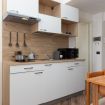 L'appartamento climatizzato è composto da 1 camera da letto, un soggiorno, una cucina completamente attrezzata con lavastoviglie e macchina da caffè, e 1 bagno con cabina doccia e accappatoi. Gli asciugamani e la biancheria da letto sono disponibili nell'appartamento. Questo appartamento è non fumatori e insonorizzato.